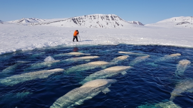 Белухи на Чукотке, застрявшие в ледовом плену, могут вскоре спастись — столбики термометров начали подниматься, началось таяние льда.